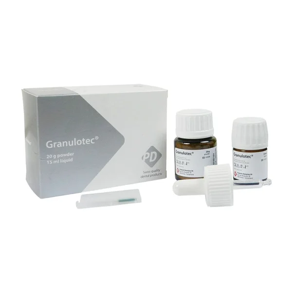GRANULOTEC est un produit d’obturation sans eugénol, bactéricide, non résorbable et radio-opaque pour l’obturation inchangée après pulpectomie et traitement des voies navigables des racines, des tranchées radiculaires contaminées, explicitement à proximité d’un granulome. Il garantit la réparation de la contamination, la résorption des granulomes et la récupération des tissus péri-apicaux.